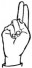 На ћирилици написано МИРЈАНА АЛАНОВИЋ састоји се из 15 слова [?]. Исписано ћириличном једноручном азбуком за глувонеме: